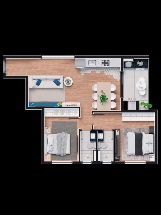 Apartamentos Tipo Final 01 | 2 Dormitórios, sendo 1 Suíte e 1 Demi-Suíte