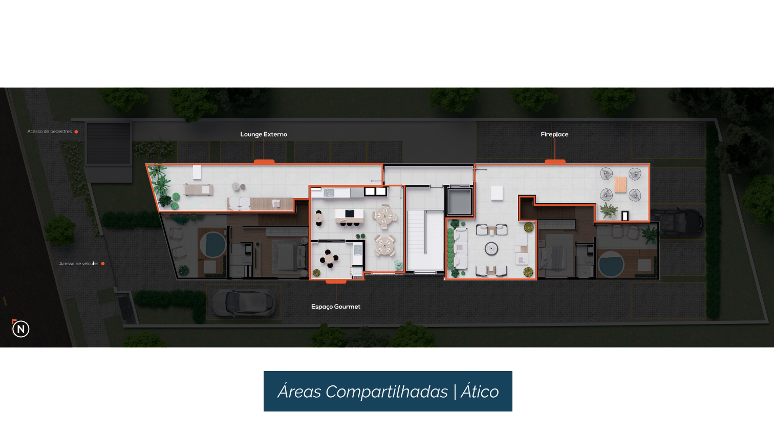 • Cobertura Duplex com terraço de 3 quartos (104,04m²) com vaga de garagem para 2 carros;